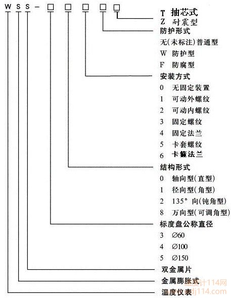 抽芯式雙金屬溫度計使用與訂貨須知: