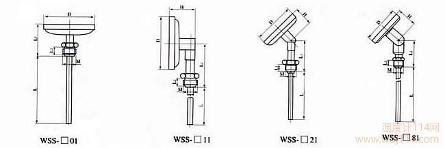 抽芯式雙金屬溫度計參數(shù)對照上表中的字母